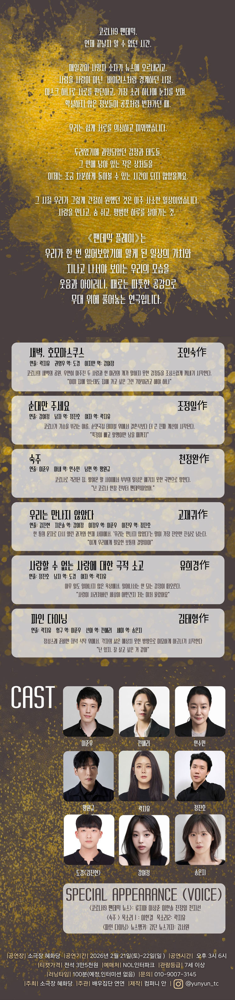 ÇÑ ÀÛ°¡°¡ ÀÏ»ýµ¿¾È ¾´ ´ÜÆíµéÀ» ¸ð¾Æ³õ°í Çѹø¿¡ °ø¿¬Çϸé ÀÛ°¡ÀÇ ÀϰüµÈ ¼¼°è°üÀÌ Åõ¿µµÇ±â¶§¹®¿¡ ¿ÏÀü ´Ù¸¥ ³»¿ë°°¾Æµµ ±× ¼Ó¿¡¼ ¿¬°áµÈ °í¸®¸¦ ãÀ»¼ö Àִµ¥ ÀÌ°Ç ÀÛ°¡¿Í ¿¬ÃâÀÌ ¸ðµÎ ´Ù¸£°í, ¹è°æ¸¸ Åö! ´øÁ®³ù´ÂÁö ±×³É ½ßÆÇ ´Ù¸¥ ¿¬±ØÀÏ»ÓÀÌ´Ù. ¿È´Ï¹ö½ºÇü½ÄÀº ±×·¡µµ ±½Á÷ÇÑ ÇϳªÀÇ ÁÖÁ¦¸¦ ÅëÀϽÃ۴µ¥ ¾îÂÀ À̸®µµ µû·Î³ë´ÂÁö.